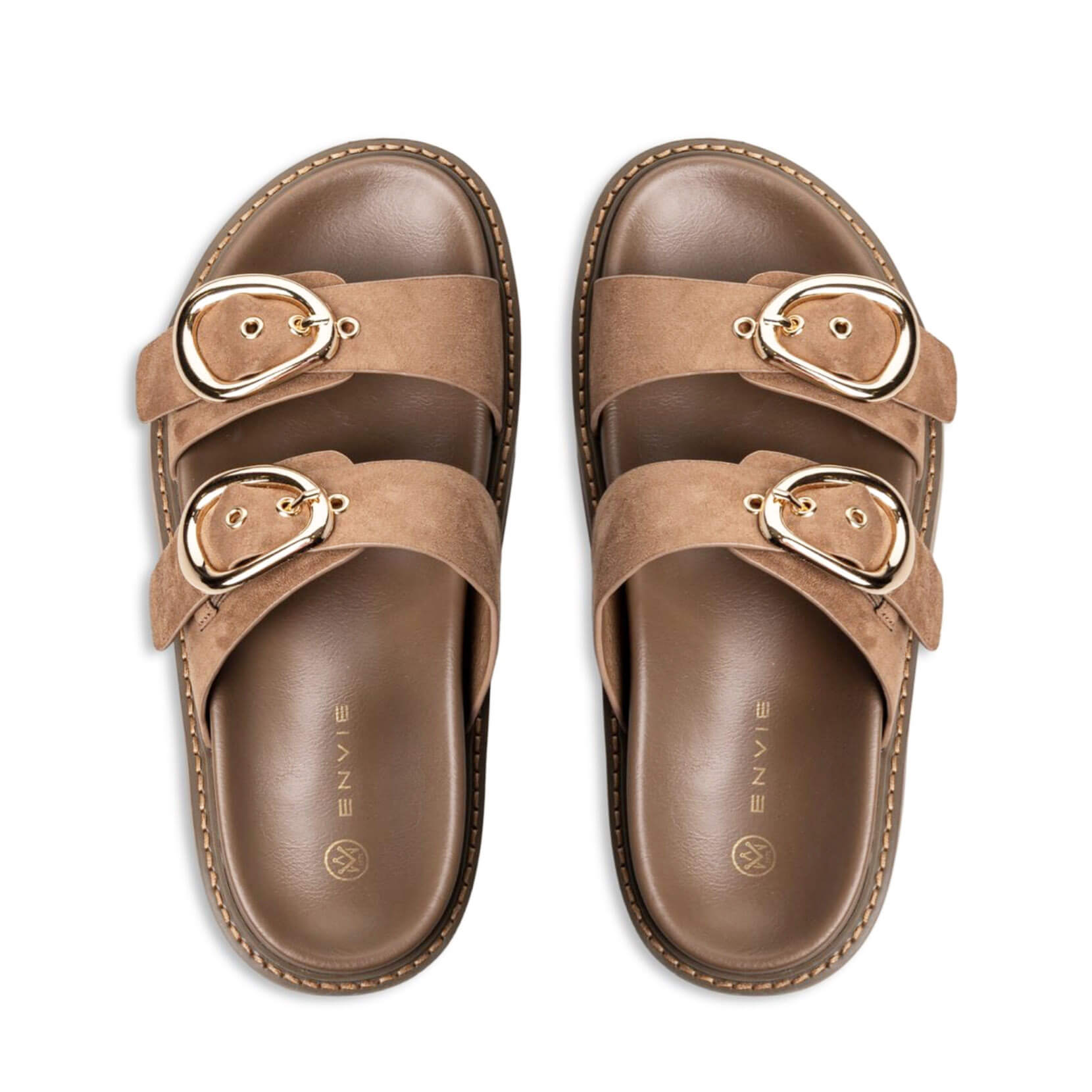 Envie flatforms σανδάλια από συνθετικό δέρμα σε suede υφή, με ελαστική σόλα Collection S/S 26.
