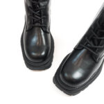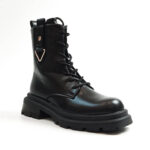 | Αρβυλάκι τρακτερωτό με κορδόνια και διακοσμητικό στοιχείο στο πλάϊ, από οικολογικό δέρμα. Κλείνει με φερμουάρ στο πλάι. Έχει αντιολισθητική σόλα και το ύψος του είναι 5 εκ. |
