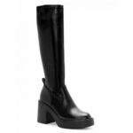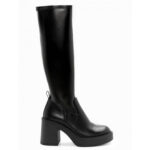 | Μπότα ψηλή με εξώραφες λεπτομέρειες και χοντρό τακούνι, από ελαστικό συνθετικό δέρμα, για άνετη εφαρμογή στην γάμπα. Κλείνει με φερμουάρ στην εσωτερική πλευρά. Το πέλμα είναι από καουτσούκ, αντιολισθητικό. Το ύψος του τακουνιού είναι 8,5 εκ. και της φιάπας 2,5 εκ. |