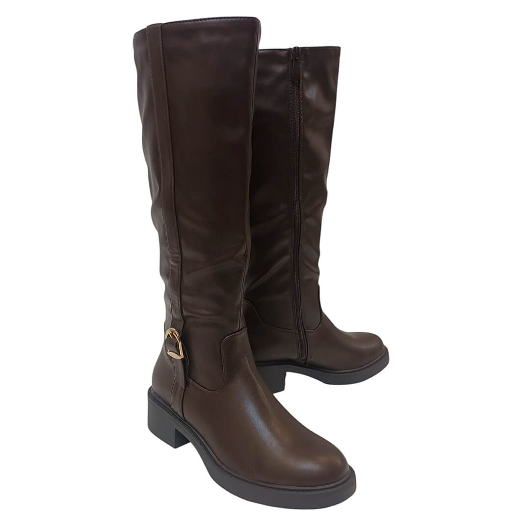 Μπότα με αγκράφα γυναικεία καφέ