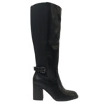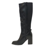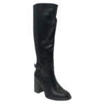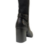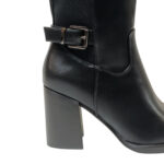 | Μπότα ψηλή, μέχρι το γόνατο με εξώραφες λεπτομέρειες και χοντρό τακούνι. Έχει λάστιχο στο πλάϊ, κατά μήκος της γάμπας, για άνετη εφαρμογή. Διακριτική αγκράφα στο πλάϊ. Κλείνει με φερμουάρ στην εσωτερική πλευρά. Το ύψος του τακουνιού είναι 7,5 εκ. |