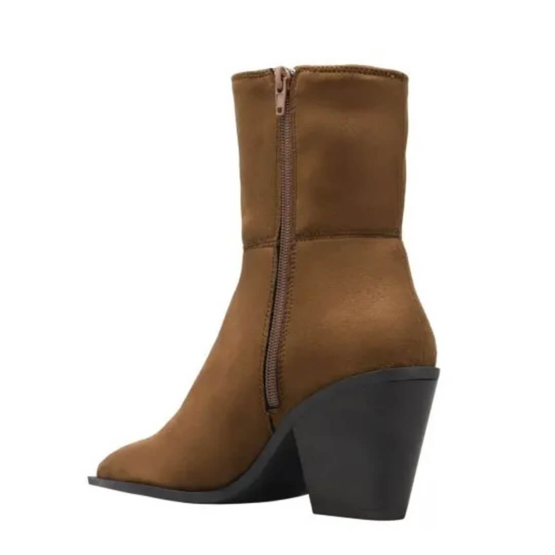 | Μποτάκι Corina cowboy με μεσαίο ύψος, σε suede υφή, από οικολογικό δέρμα. Έχει εξώραφες λεπτομέρειες, και κλείνει με φερμουάρ στην εσωτερική πλευρά. Το ύψος του τακουνιού είναι 7 εκ. |