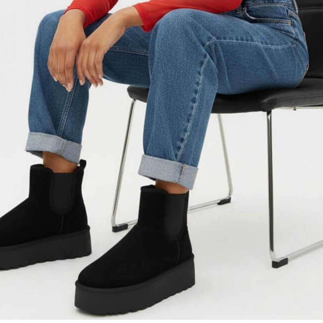 - Μποτάκι δίσολο με λάστιχο και γούνα
