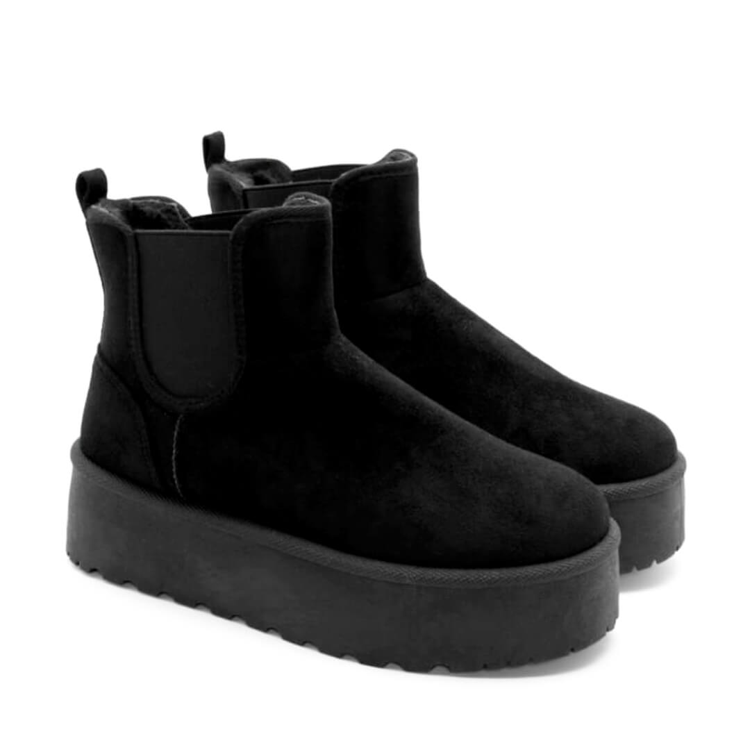 | Μποτάκι δίσολο με εξώραφες λεπτομέρειες, σε σουέτ υφή. Έχει γούνινη επένδυση εσωτερικά και λάστιχο στο πλάϊ. Θηλιά στο πίσω μέρος. Το ύψος του είναι 4,5 εκ. |