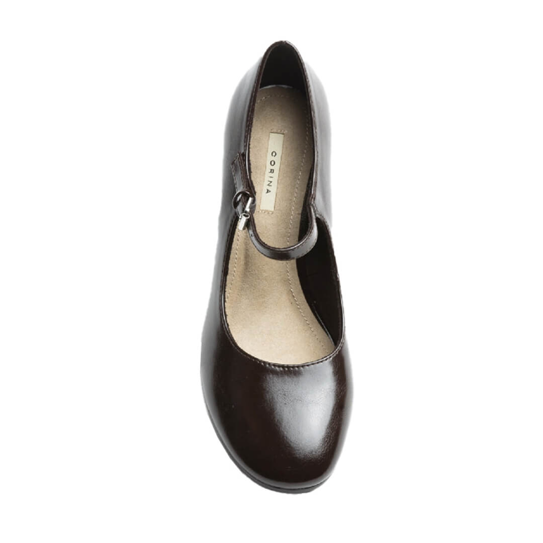 Γόβα Mary Jane από την Corina, με μπαρέτα, από συνθετικό δέρμα. Διαθέτει μαξιλαράκι στο πέλμα για περισσότερη άνεση. Έχει χοντρό τετράγωνο τακούνι και το ύψος του τακουνιού είναι 7 εκ.