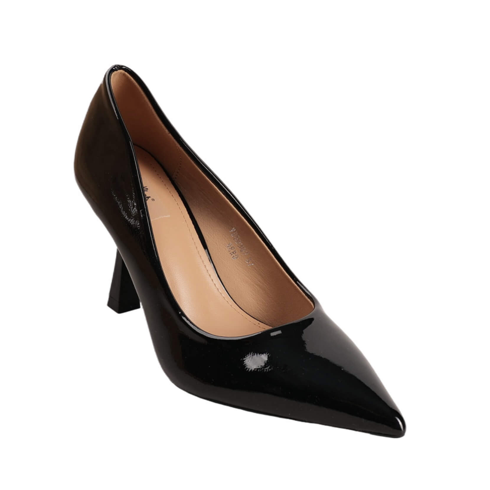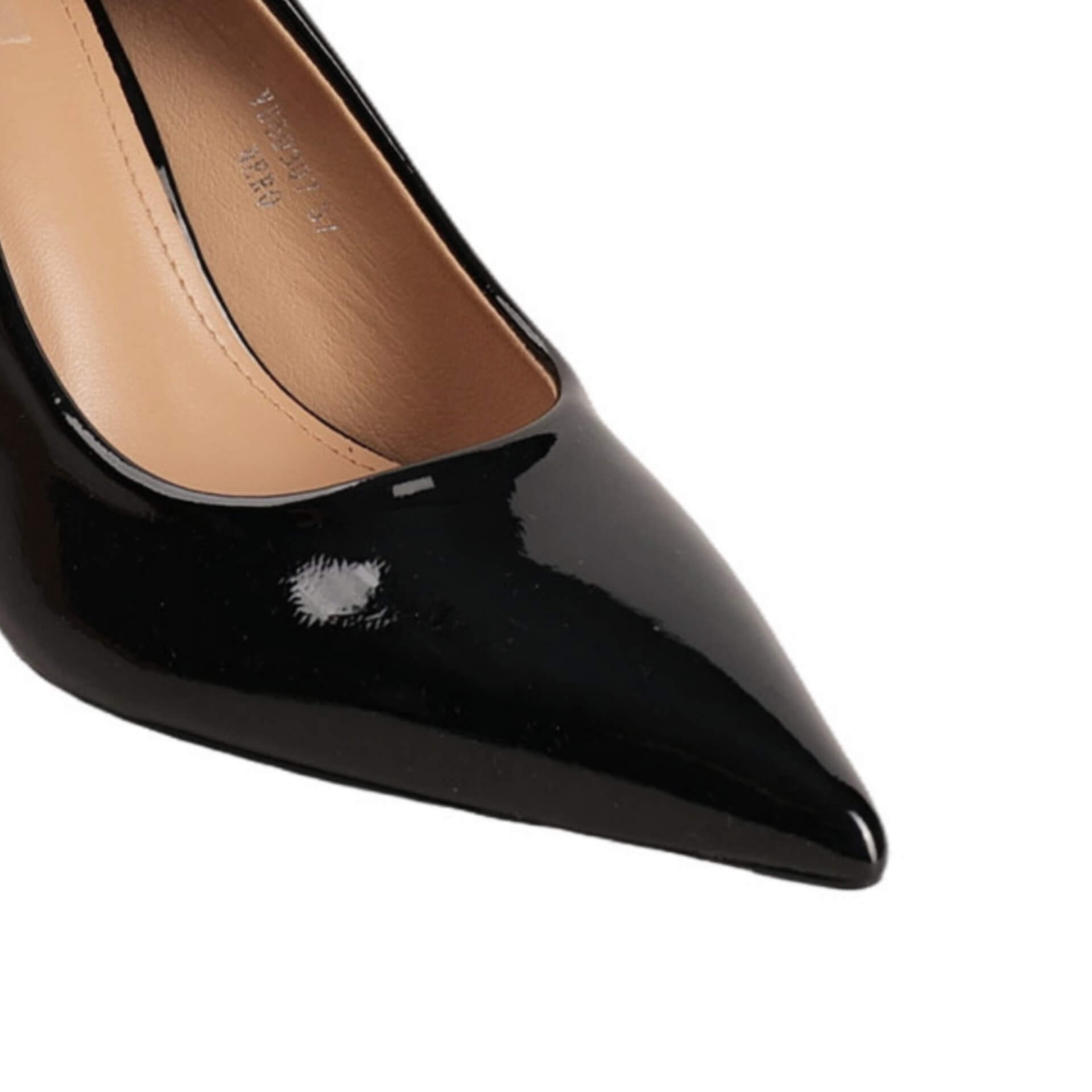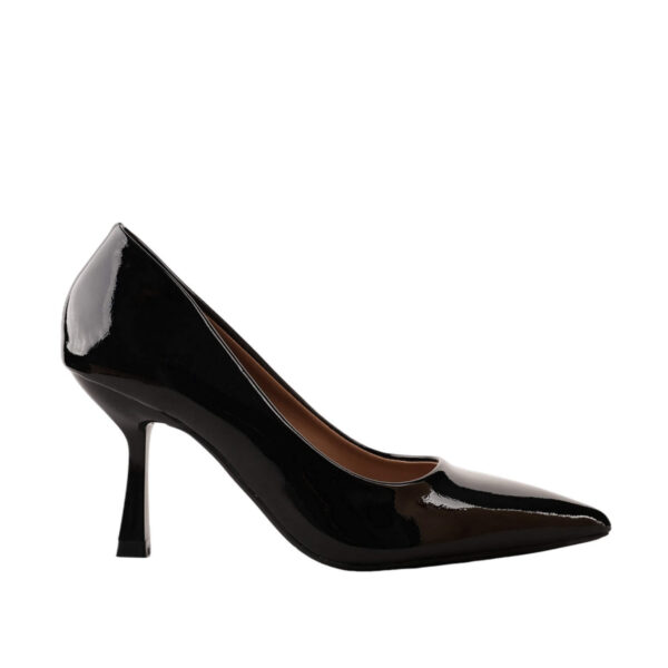Γόβα με λεπτό τακούνι, από οικολογικό λουστρίνι. Μυτερό τελείωμα. Το ύψος του τακουνιού είναι 8 εκ. Μια κομψή και στυλάτη επιλογή για πολλές περιστάσεις!