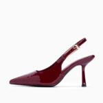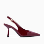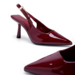 | Open heel γόβα με λεπτό τακούνι, από οικολογικό λουστρίνι. Μυτερό τελείωμα. Κλείνει με αγκράφα στον αστράγαλο. Το ύψος του τακουνιού είναι 8 εκ. |