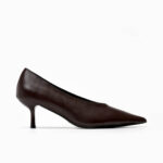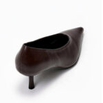 | Γόβα καφέ με χαμηλό kitten τακούνι, από οικολογικό δέρμα. Μυτερό τελείωμα. Το ύψος του τακουνιού είναι 5,5 εκ. Μια κομψή και στυλάτη επιλογή για πολλές περιστάσεις! |