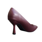 Γόβα μπορντό με λεπτό τακούνι, από οικολογικό δέρμα. Μυτερό τελείωμα. Το ύψος του τακουνιού είναι 8 εκ. Μια κομψή και στυλάτη επιλογή για πολλές περιστάσεις!