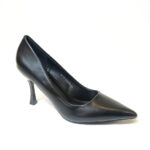 Γόβα μαύρη με λεπτό τακούνι, από οικολογικό δέρμα. Μυτερό τελείωμα. Το ύψος του τακουνιού είναι 8 εκ. Μια κομψή και στυλάτη επιλογή για πολλές περιστάσεις!