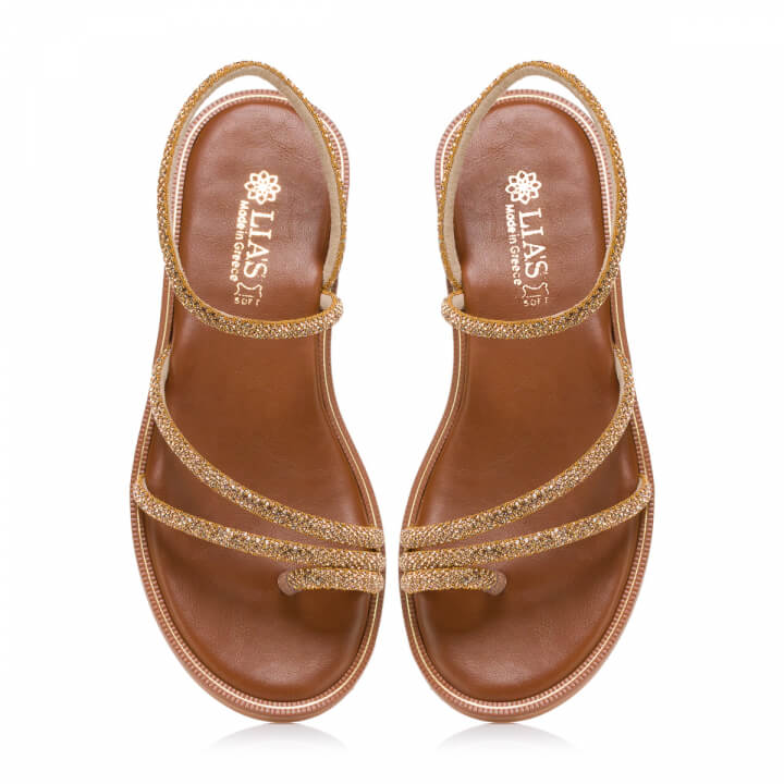 | Δερμάτινο σανδάλι με λαμπερά λεπτά λουράκια που αγκαλιάζουν το πόδι. Διαθέτει μαλακό πέλμα και το ύψος του είναι 1,5 εκ. Μια κομψή και στυλάτη επιλογή για πολλές περιστάσεις! |