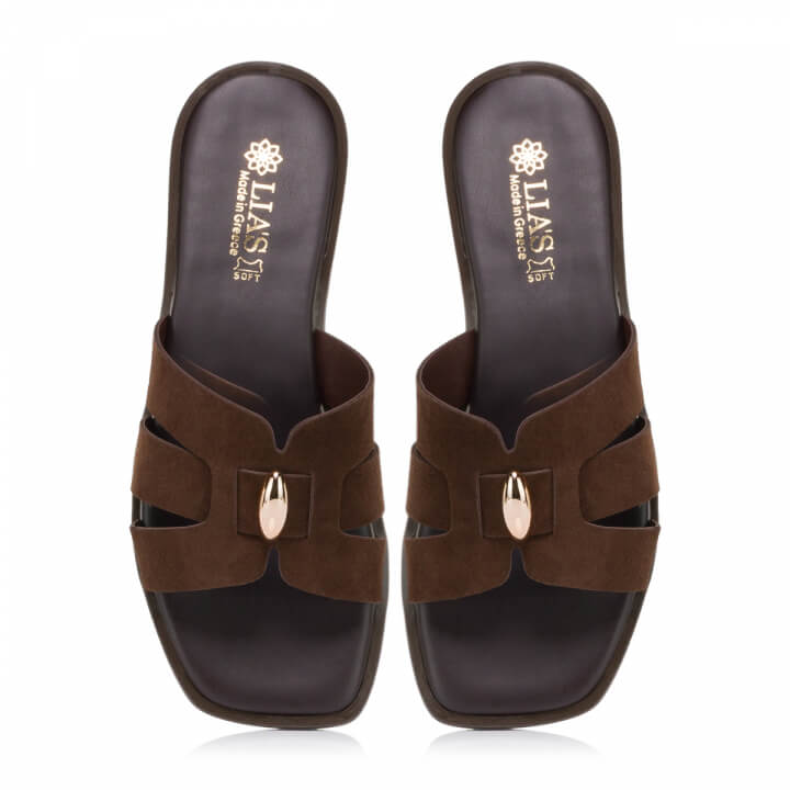 - Lias leather slide καφέ