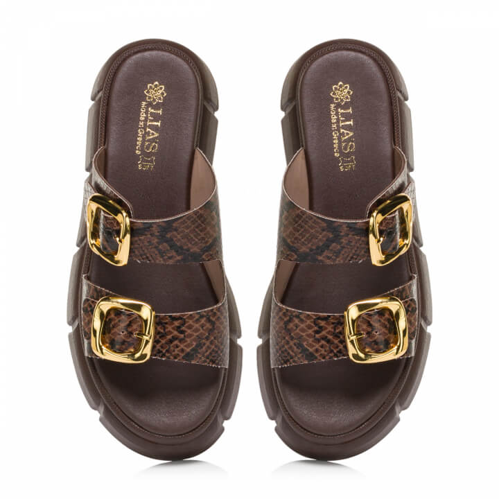 Lias leather slide snake καφέ