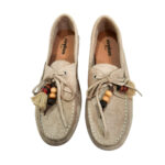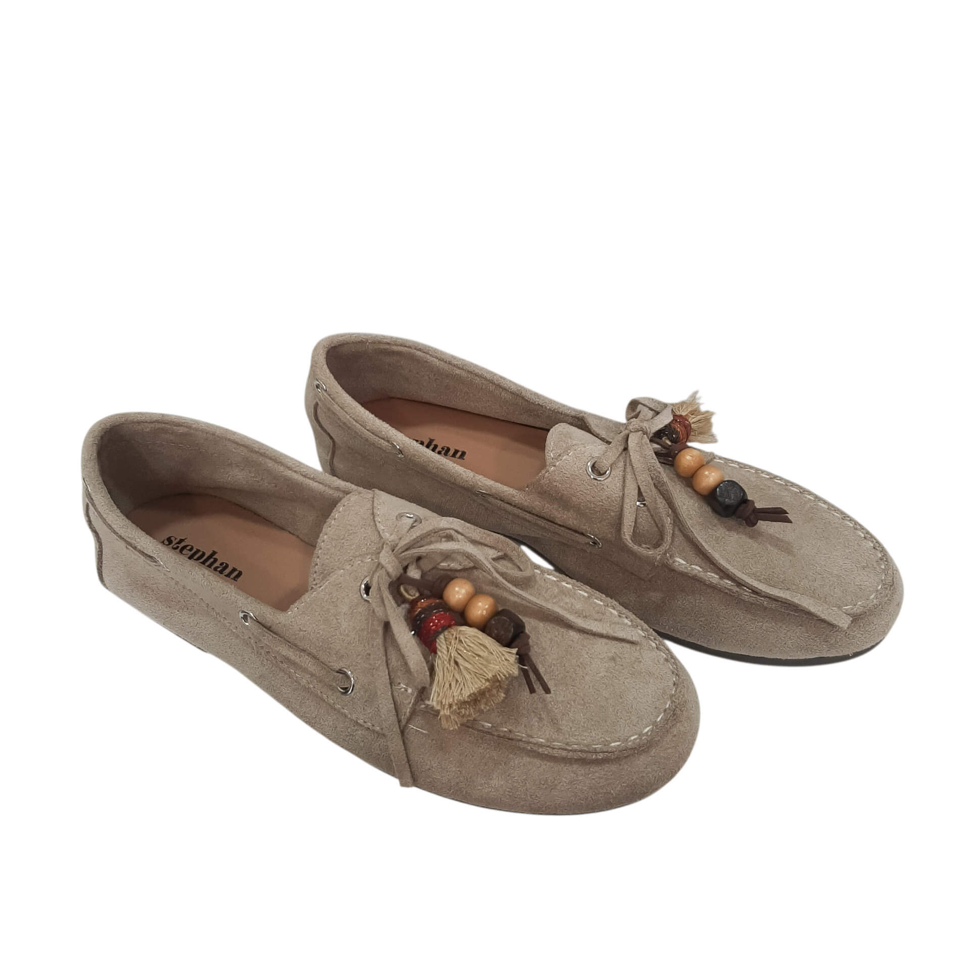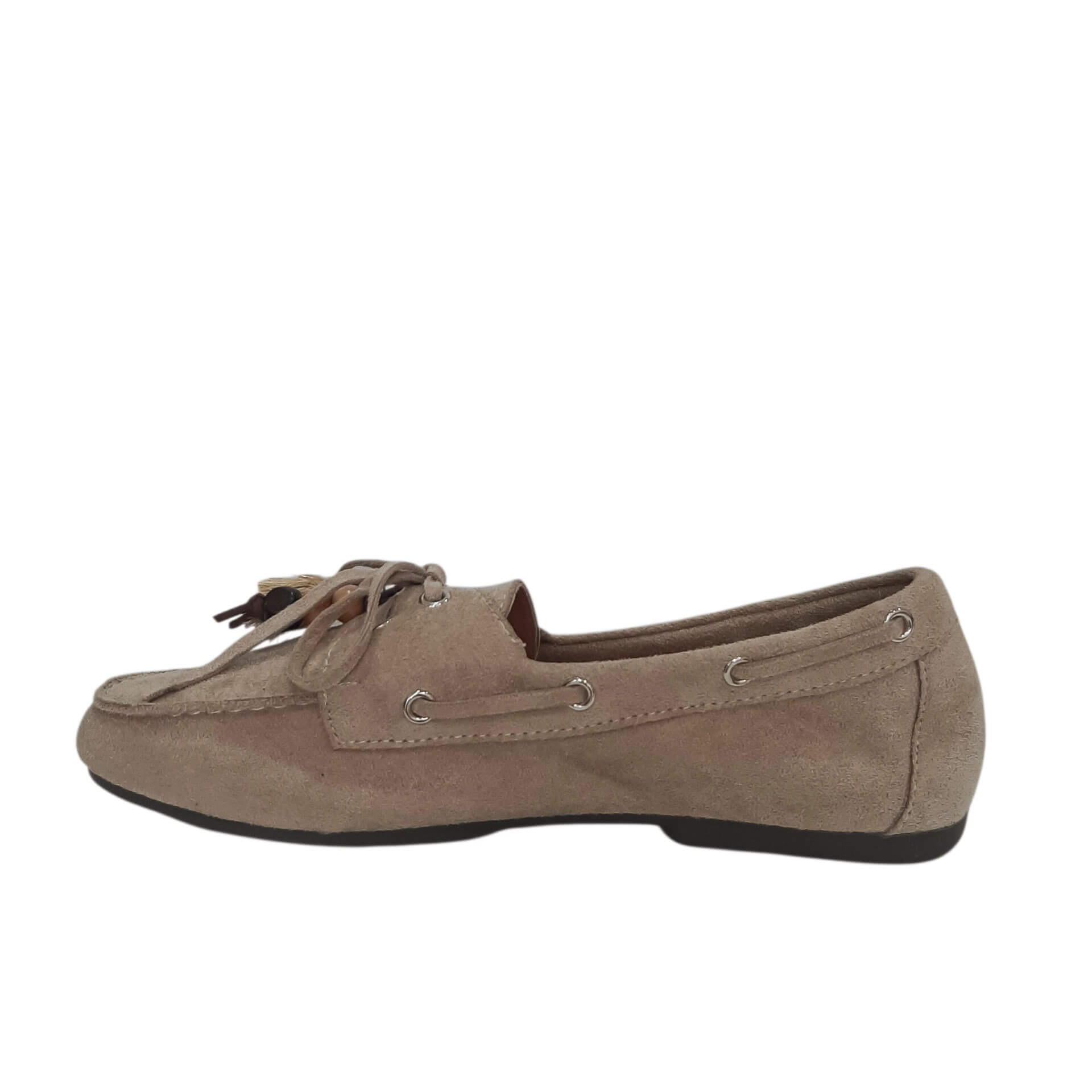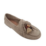 | Μοκασίνια φλατ με εξώραφες λεπτομέρειες και διακοσμητικά στοιχεία στο πάνω μέρος. Δέσιμο με κορδόνι. Είναι από οικολογικό δέρμα σε suede υφή, και το ύψος του τακουνιού είναι 1 εκ. |