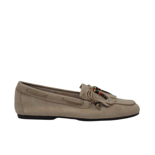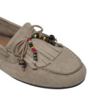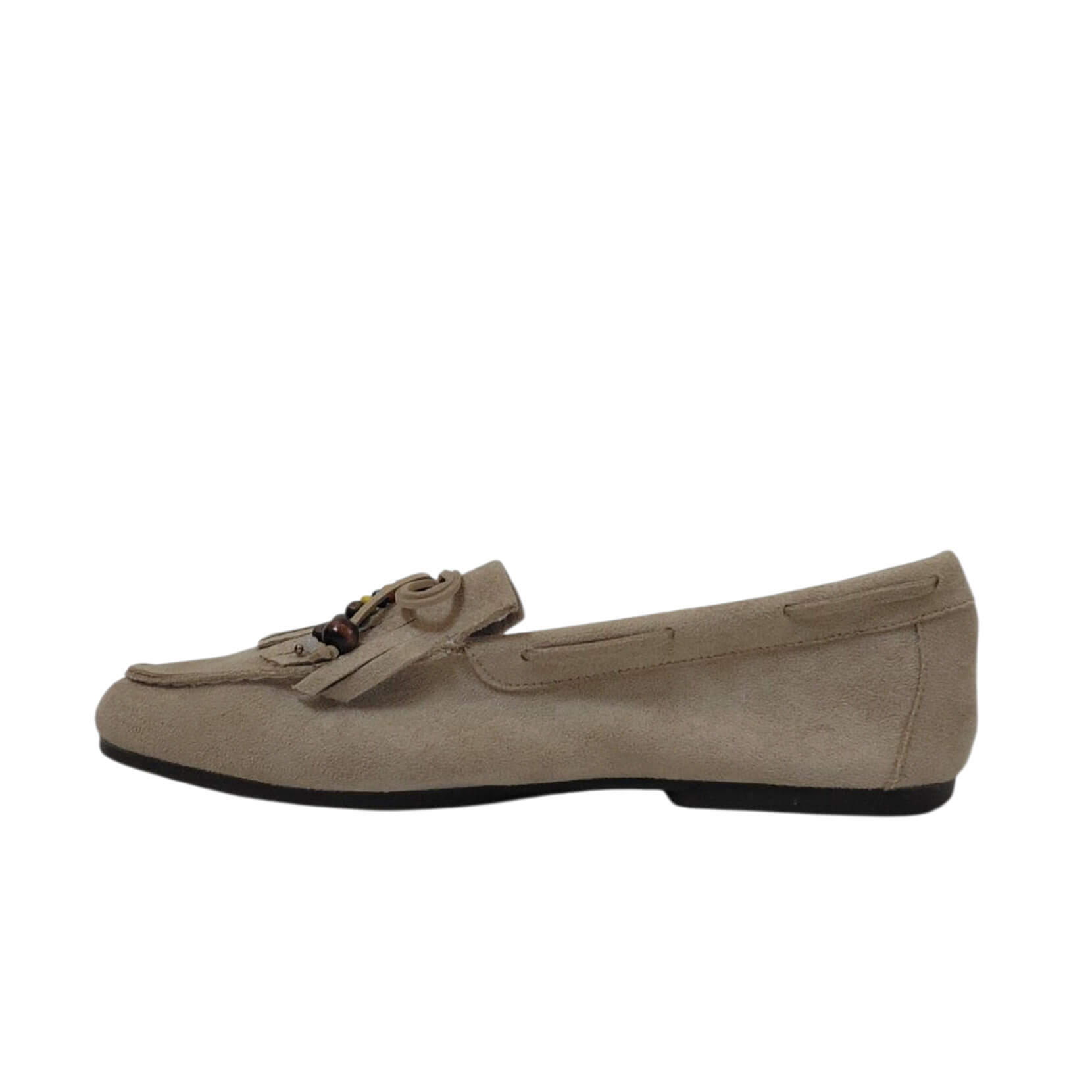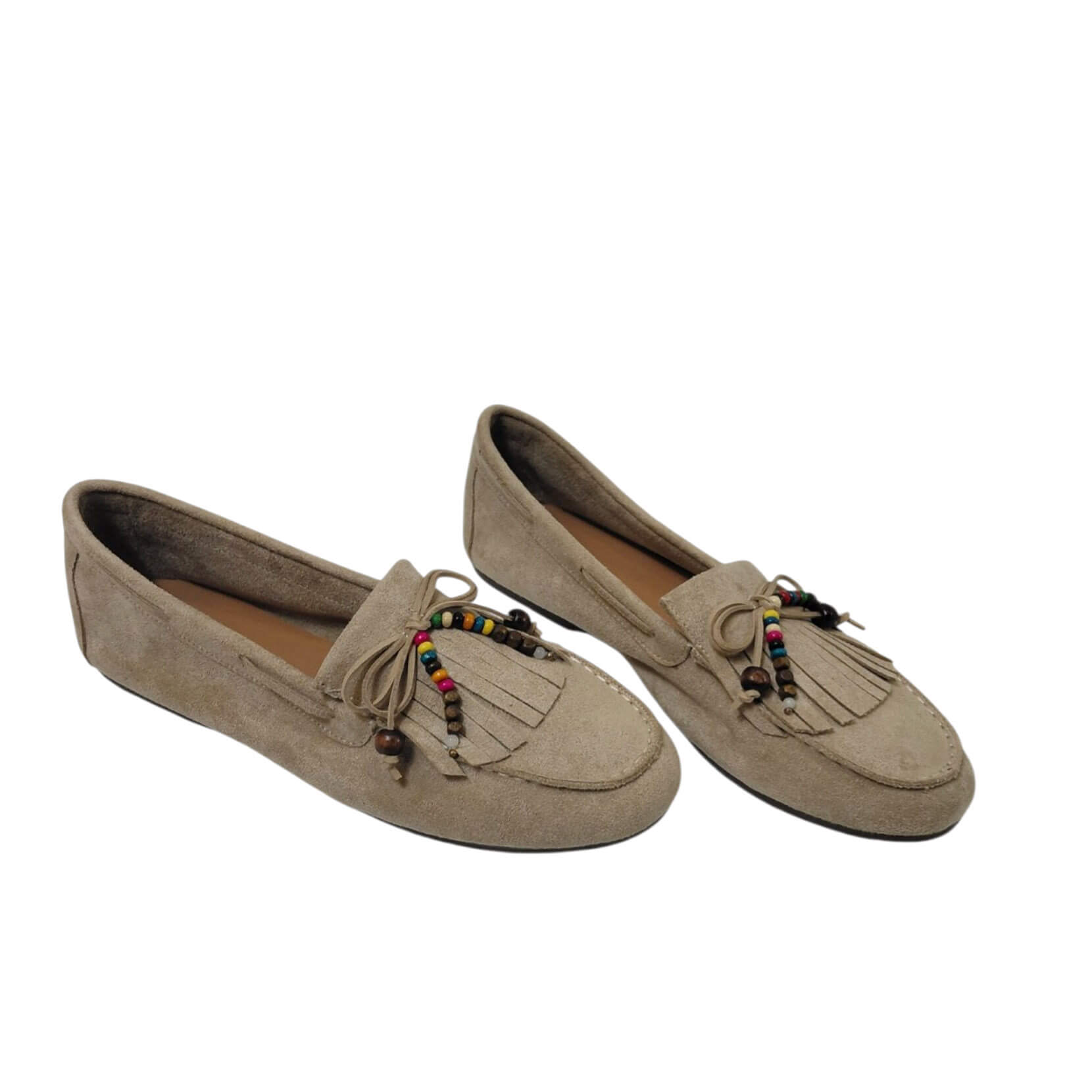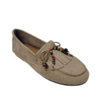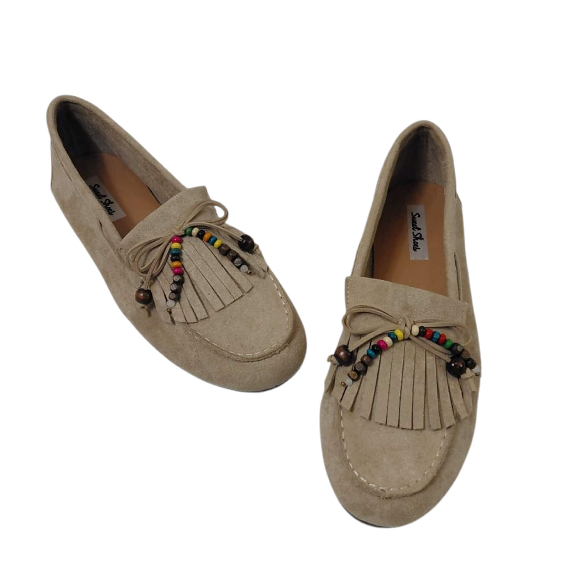 | Μοκασίνια φλατ με κρόσσια και διακοσμητικά στοιχεία στο πάνω μέρος. Είναι από οικολογικό δέρμα σε suede υφή, και το ύψος του τακουνιού είναι 1 εκ. Για καθημερινές άνετες εμφανίσεις, με στυλ! |