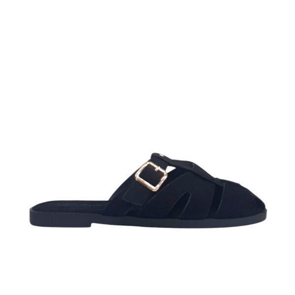 Fisherman mule φλατ με ρυθμιζόμενη αγκράφα, σε σουέτ υφή.Το ύψος του τακουνιού είναι 1 εκ. Για καθημερινές άνετες εμφανίσεις, με στυλ!
