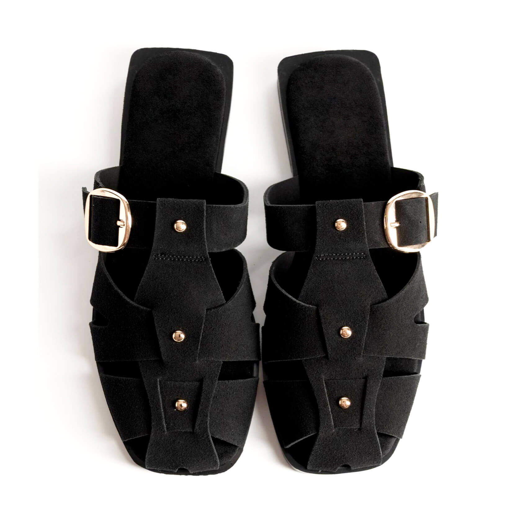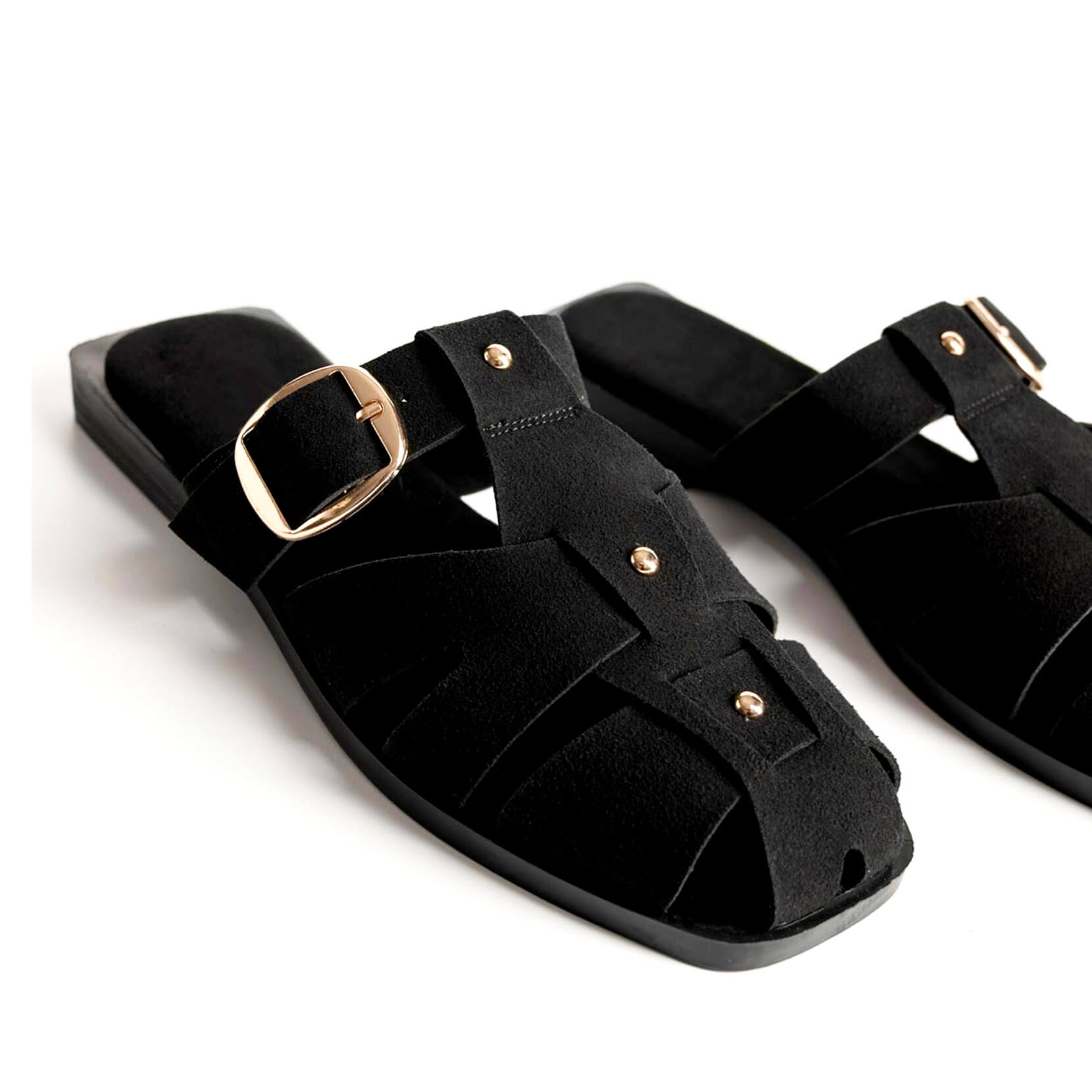 | Mule με περίτεχνα λουριά και ρυθμιζόμενη αγκράφα, σε σουέτ υφή. Έχει καρέ τελείωμα και το ύψος του τακουνιού είναι εκ. Για καθημερινές άνετες εμφανίσεις, με στυλ! |