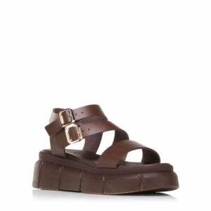 - Mule φλατ με ραφές καφέ