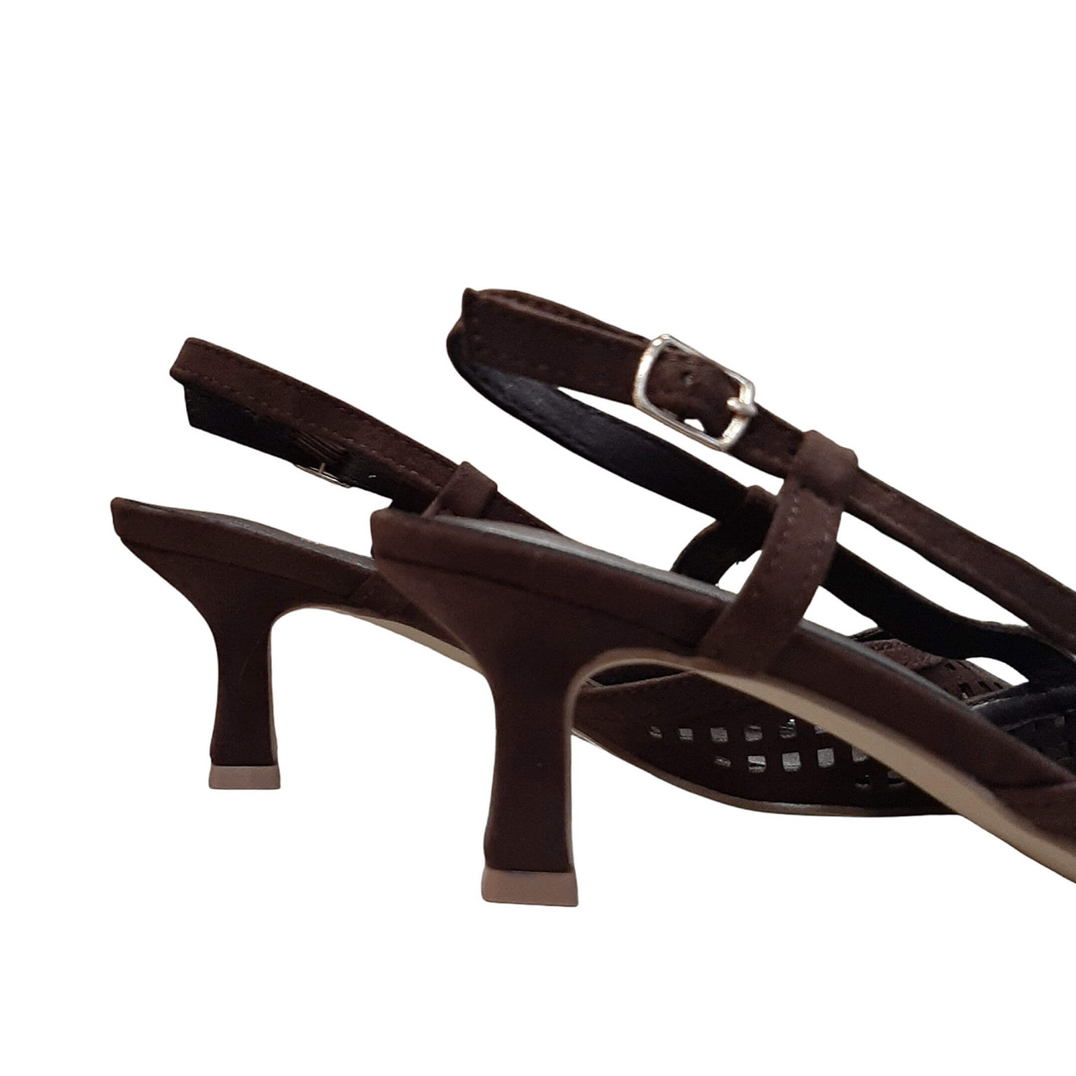 Open heel γόβα με kitten τακούνι καφέ