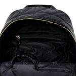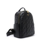 Γυναικείο σακίδιο πλάτης Garbina κατασκευασμένο από τεχνόδερμα υψηλής ποιότητας με ραφές ‘a’ που του προσφέρουν καπιτονέ υφή. Είναι σχεδιασμένο σε μεγάλο μέγεθος για να διαθέτει χωρητικότητα και άνεση στην οργάνωση. Ασφαλίζει με διπλό μεταλλικό φερμουάρ σε χρυσή απόχρωση. Εσωτερικά είναι επενδυμένο με φόδρα και περιέχει μία κλειστή θήκη με φερμουάρ και δύο ανοιχτές για μικρά αντικείμενα. Εξωτερικά έχει θέσεις στα πλαϊνά, φαρδιούς ιμάντες πλάτης που μπορούν να ρυθμιστούν, και έξτρα ιμάντα για στερέωση σε βαλίτσα. Ένα πολύ ιδιαίτερο σακίδιο, με ξεχωριστή όψη, κατάλληλο για κάθε στυλ.