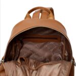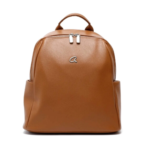 Γυναικείο σακίδιο πλάτης Katrin από τεχνόδερμα. Είναι σχεδιασμένο σε μεγάλο μέγεθος ώστε να παρέχει μεγαλή χωρητικότητα και οργάνωση. Εσωτερικά είναι επενδυμένο με φόδρα και διαθέτει μία τσέπη με φερμουάρ και δύο ανοιχτές θήκες για μικρά αντικείμενα. Εξωτερικά διαθέτει θήκες στα πλαϊνά, ρυθμιζόμενους ιμάντες πλάτης και επιπλεόν ιμάντα για να μπορεί να στερεωθεί σε βαλίτσα. Κλείνει με διπλό μεταλλικό φερμουάρ σε ασημί ματ απόχρωση. Άνετο και βολικό για κάθε μέρα.