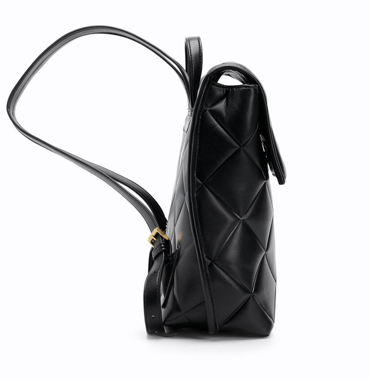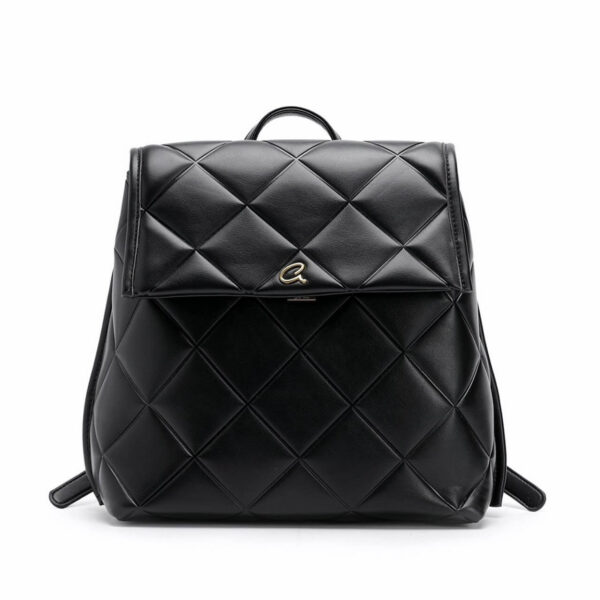 Γυναικείο σακίδιο πλάτης Lene, κατασκευασμένο από ειδικά διαμορφωμένο τεχνόδερμα με πρεσαριστή καπιτονέ όψη. Είναι επενδυμένο με φόδρα εσωτερικά και διαθέτει δύο ανοιχτές θήκες και μία με φερμουάρ. Τα λουράκια πλάτης του, μπορούν να προσαρμοστούν για άνεση στη μετακίνηση, στο ανάλογο ύψος. Κλείνει με μεταλλικό κούμπωμα στο καπάκι. Ένα πολύ ιδιαίτερο σακίδιο πλάτης, κατάλληλο για κάθε μέρα.