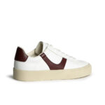 Sneakers Corina λευκά με μπορντό λεπτομέρειες, από οικολογικό δέρμα. Κλείσιμο με κορδόνια. Διαθέτουν μαλακό πάτο και αντιολισθητική σόλα. Το ύψος τους είναι 3 εκ. Συνδυάζουν άψογα στυλ και άνεση, ιδανικά για καθημερινή χρήση.