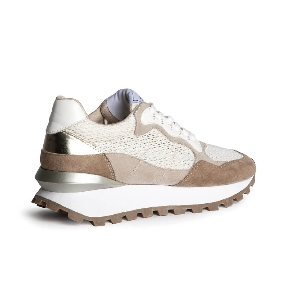 Sneakers Corina με χρωματικό συνδυασμό σε γήϊνες αποχρώσεις, από ύφασμα σε συνδυασμό με suede. Χρυσές λεπτομέρειες. Διαθέτουν μαλακό πάτο και αντιολισθητική σόλα. Το ύψος τους είναι 3,5 εκ. Συνδυάζουν άψογα στυλ και άνεση, ιδανικά για καθημερινή χρήση.