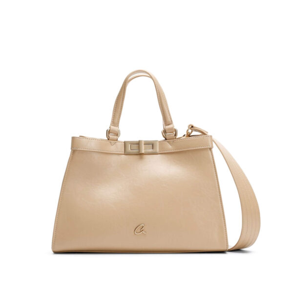 Γυναικεία τσάντα χειρός Soren από τεχνόδερμα υψηλής ποιότητας. Διαθέτει σταθερή δομή και στο εσωτερικό της είναι επενδυμένη με φόδρα και περιλαμβάνει τσέπη με φερμουάρ και δύο ανοιχτές θήκες για οργάνωση. Έχει κράτημα με διπλά χερούλια και επιπλέον αποσπώμενο φαρδύ λουρί για να κρατηθεί εύκολα και ως χιαστί. Με χρυσές μεταλλικές λεπτομέρειες και στριφογυριστό κούμπωμα που την ασφαλίζει. Μία τσάντα σχεδιασμένη με μεγάλη χωρητικότητα και μίνιμαλ εμφάνιση ώστε να μπορεί να συνδυαστεί με κάθε σύνολο.