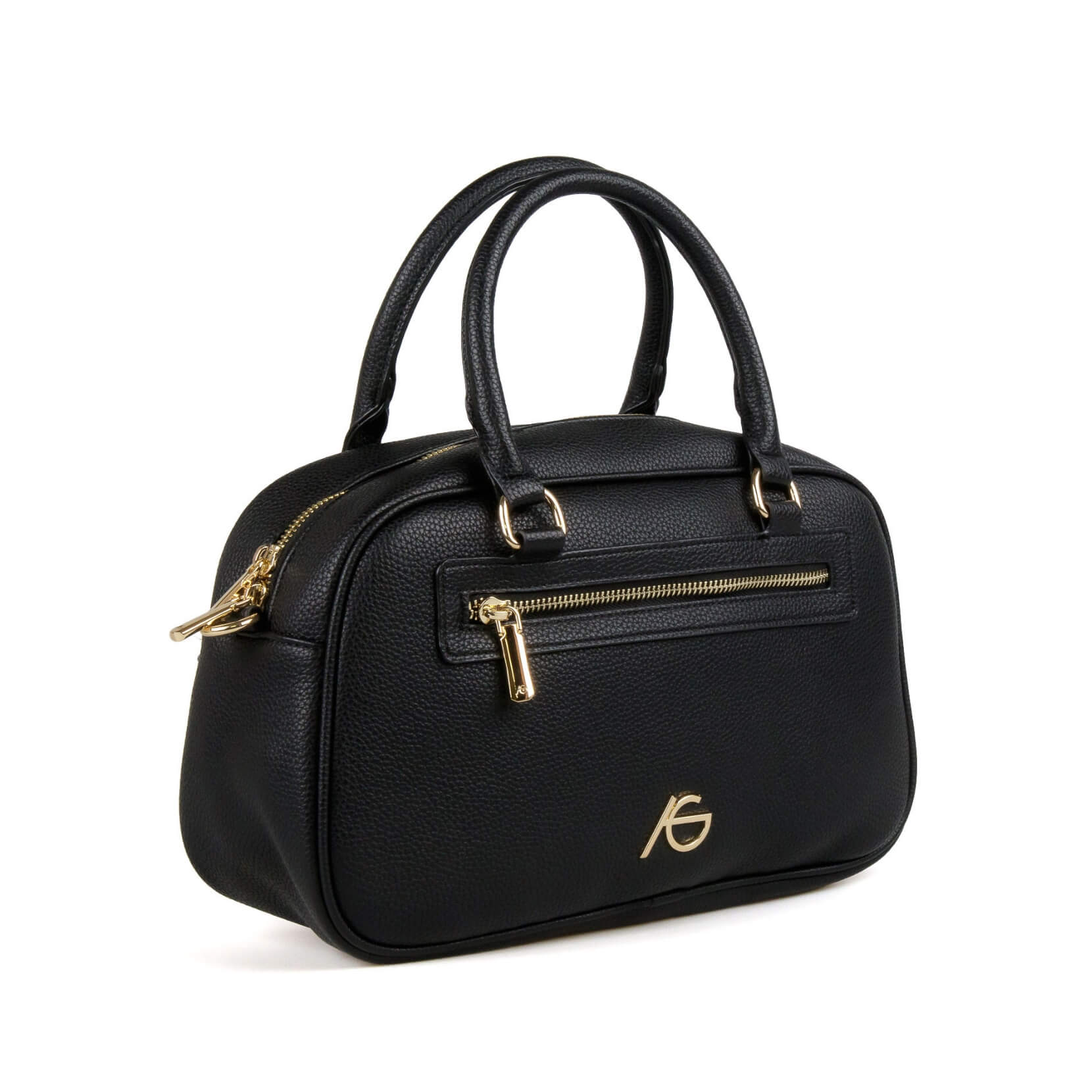 Μαύρη τσάντα από την Ελληνική εταιρεία Ari Gorgio. Διαθέτει το λογότυπο στο μπροστινό μέρος, χρυσές λεπτομέρειες, σταθερά χερούλια για να κρατηθεί ως χειρός και αποσπώμενο λουράκι για να φορεθεί στον ώμο ή χιαστί. Εσωτερικά έχει μία κεντρική θήκη με δύο βοηθητικές, για κλειδιά ή μικροαντικέιμενα. Εξωτερικά έχει μία βοηθητική στο μπροστινό μέρος. Κλείνει με φερμουάρ. Τέλεια επιλογή για τις καθημερινές σου εμφανίσεις!