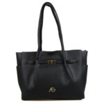 Μαύρη τσάντα ώμου, για σούπερ στυλάτες εμφανίσεις! Κατασκευάζεται από την Ελληνική εταιρεία Ari Gorgio. Διαθέτει σουρωτό σχέδιο, ανάγλυφο διακοσμητικό λογότυπο στο μπροστινό μέρος, χρυσές λεπτομέρειες, σταθερά λουράκια και αποσπώμενο ιμάντα για να φορεθεί στον ώμο ή χιαστί. Εσωτερικά έχει μία μεγάλη κεντρική θήκη με δύο βοηθητικές. Εξωτερικά έχει τέσσερις βοηθητικές για κλειδιά ή μικροαντικέιμενα. Κλείνει με φερμουάρ και μαγνήτη, για μεγαλύτερη ασφάλεια.