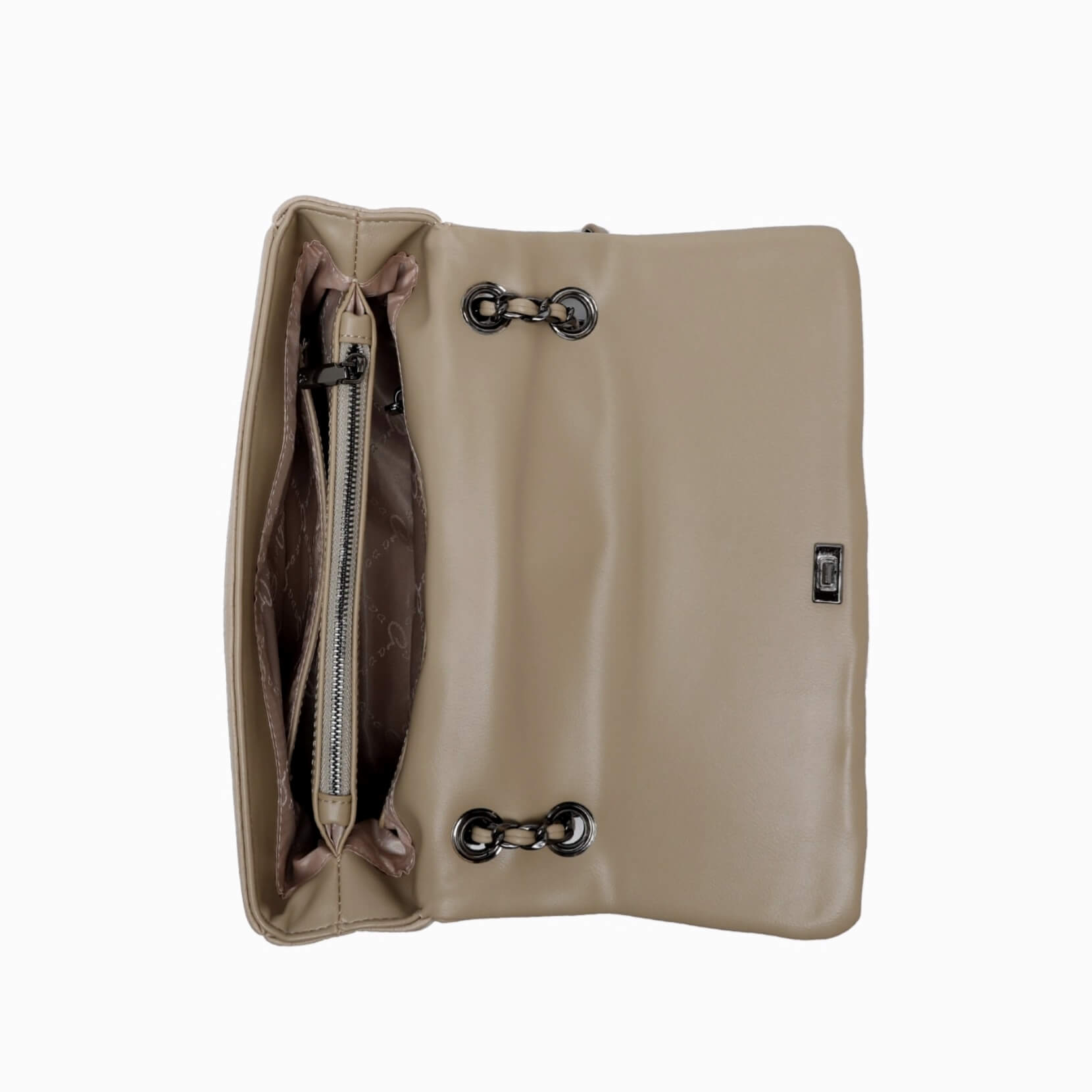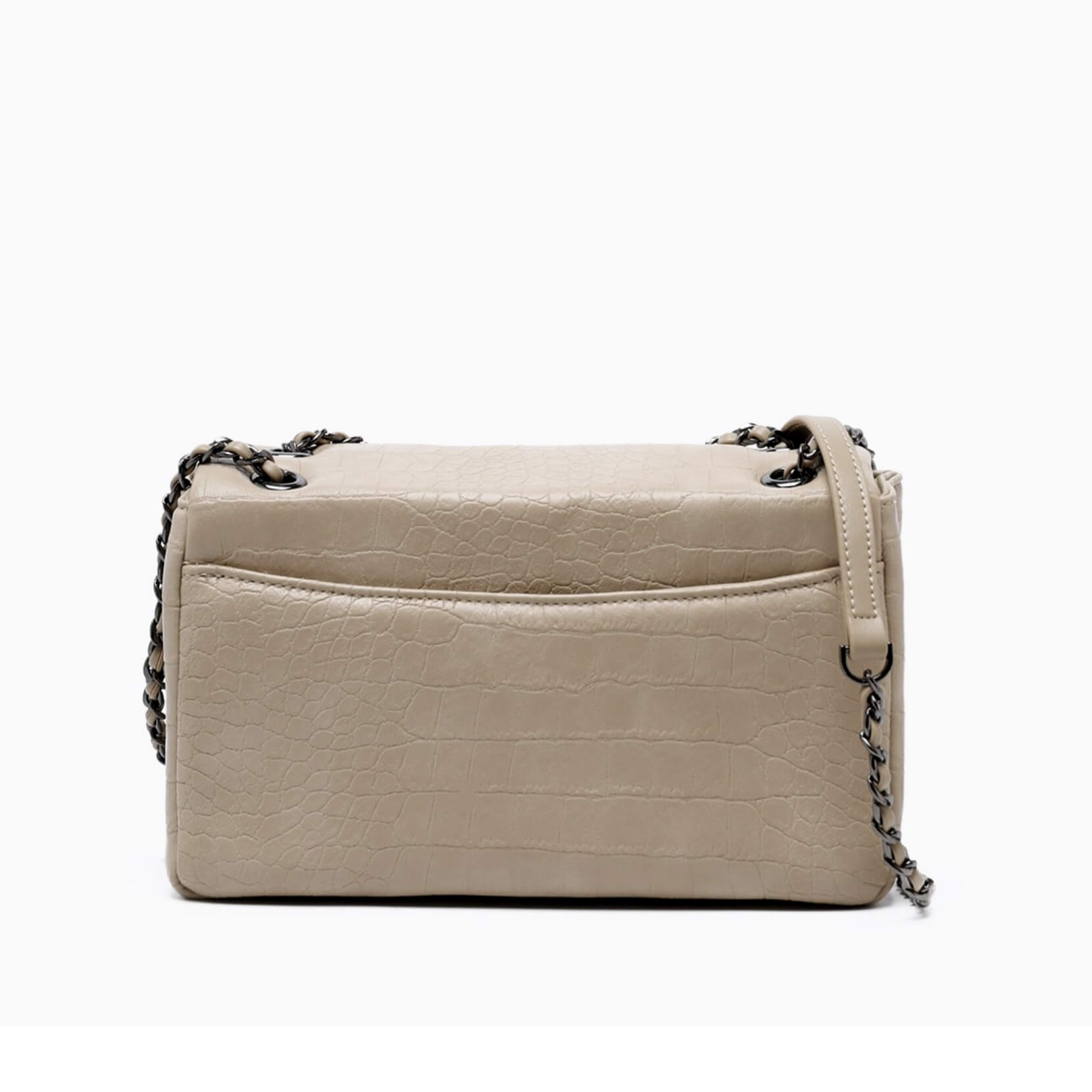 Τσάντα ώμου γυναικεία Melitta, από τεχνόδερμα με κροκό όψη. Εσωτερικά είναι επενδυμένη με φόδρα και διαχωρίζεται σε δύο χώρους που περιλαμβάνουν, θήκη και τσέπη φερμουάρ και ανοιχτή θήκη για μικρά αντικείμενα. Η αλυσίδα είναι πλεγμένη με λεπτομέρεια από τεχνόδερμα, και μπορεί να προσαρμοστεί ώστε να φορεθεί και ως χιαστί. Με πίσω τσέπη εξωτερικά για εύκολη πρόσβαση. Κλείνει με μεταλλικό κούμπωμα. Μία τσάντα που μπορεί εύκολα να συνδυαστεί με κάθε εμφάνιση.