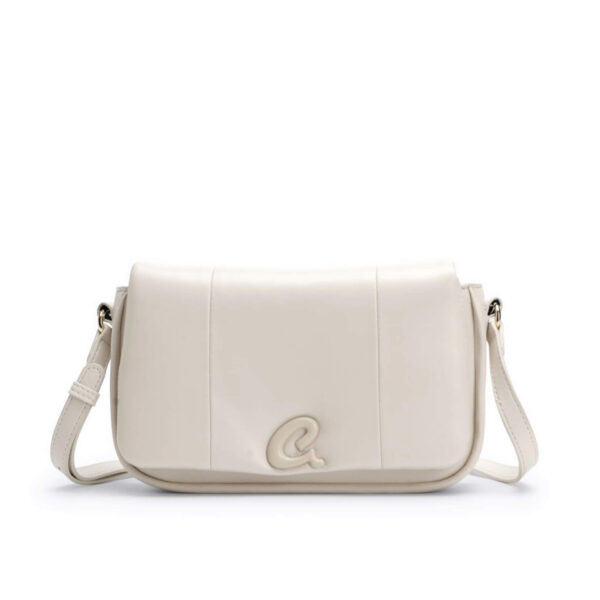Τσάντα γυναικεία, από τεχνόδερμα με μαλακή φουσκωτή υφή στο καπάκι. Περιλαμβάνει δύο αποσπώμενα λουράκια για να φορεθεί ως χιαστί ή να κρατηθεί στον ώμο. Εσωτερικά διαθέτει φόδρα και περιέχει τσεπάκι με φερμουάρ και ανοιχτή τσέπη. Ασφαλίζει με τρισδιάστατο μαγνητικό κούμπωμα σε σχήμα ‘a’. Σε μικρό μέγεθος και εύκολη στο συνδυασμό.