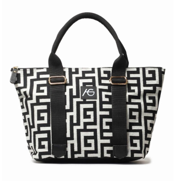 Τσάντα ώμου/χειρός shopper χειροποίητη, ελληνικής κατασκευής της εταιρείας ARI GORGIO, από ύφασμα με μαίανδρο. Έχει έναν κύριο χώρο που κλείνει με φερμουάρ και επιπλέον εσωτερικές θήκες. Τέλεια επιλογή για ξεχωριστές εμφανίσεις!